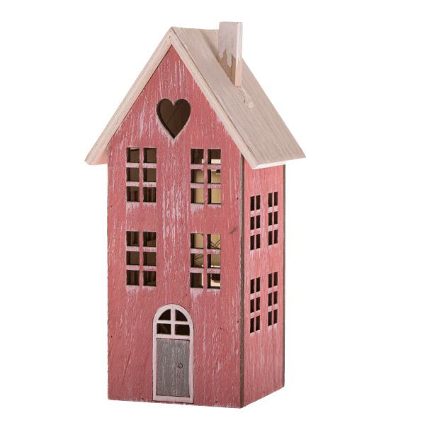 Dřevěná dekorace s LED - dům, 12/24
