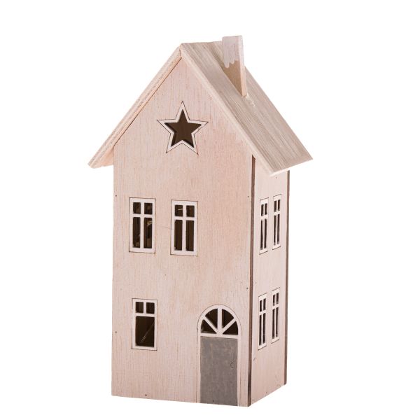 Dřevěná dekorace s LED - dům, 6/12