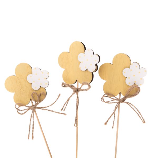 Dřevěná květina - zápich - sada 3ks, 8/144