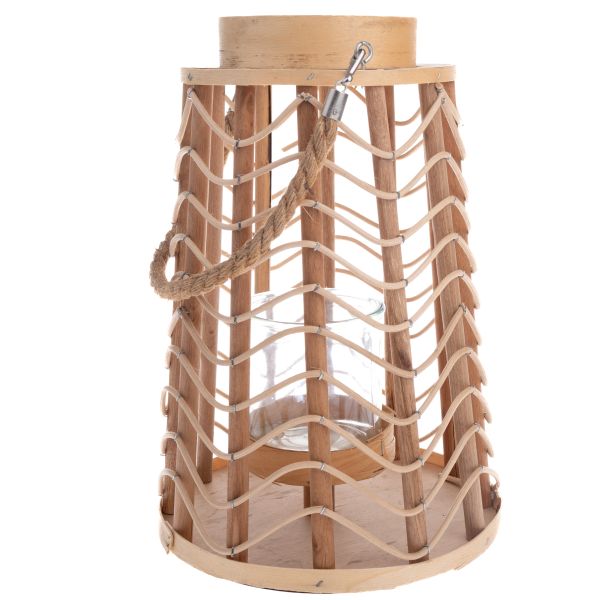 Dřevěná lucerna se sklem, natur, 0/6
