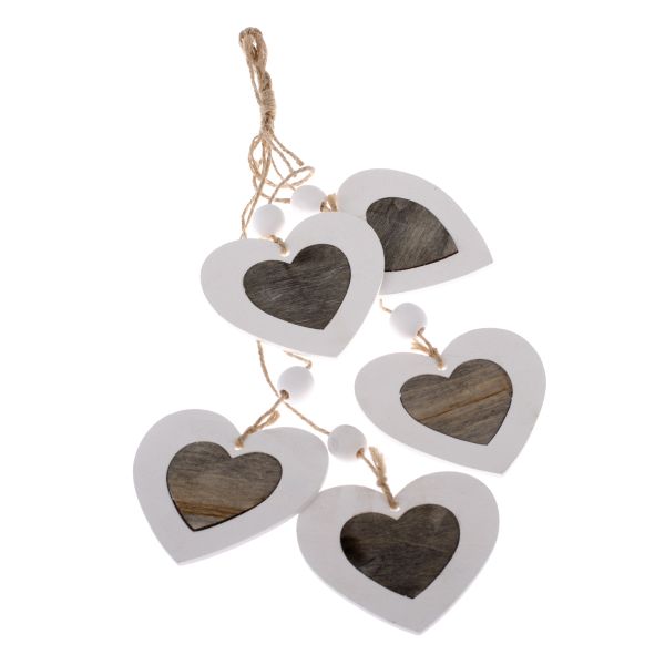 Dřevěná závěsná dekorace - srdce - sada 5ks, 0/200