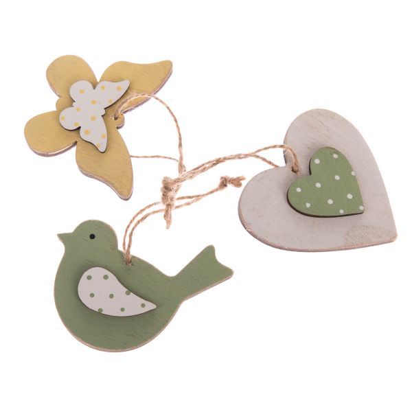 Dřevěné závěsné jarní dekorace - sada 3ks, 24/288