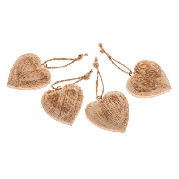 Dřevěné závěsné srdce - sada 4ks, 12/288