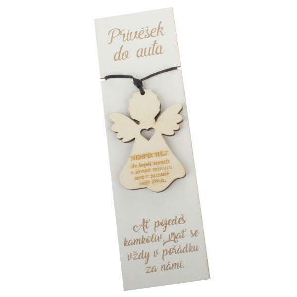 Dřevěný anděl - přívěsek do auta "Nespěchej", 0/100