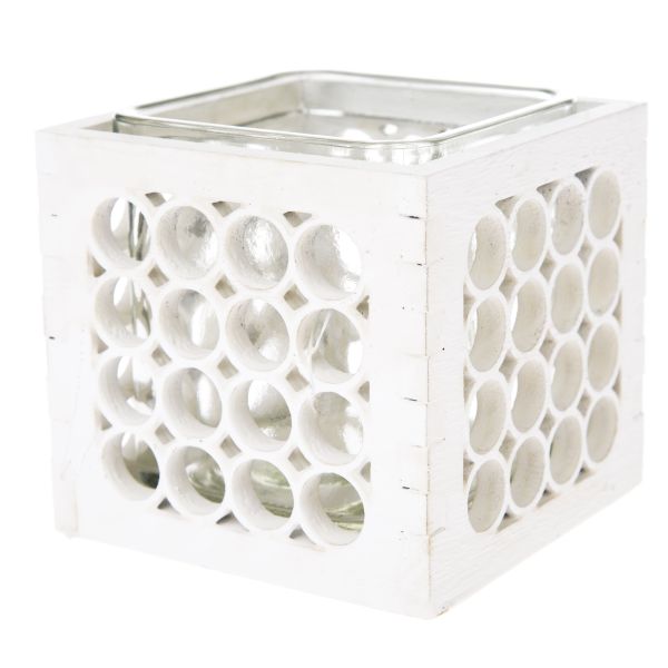 Dřevěný svícen se sklem - bílý, 0/40