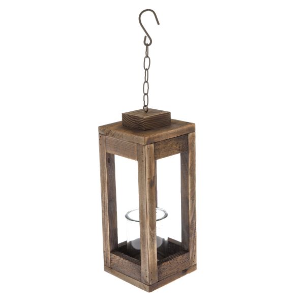 Dřevěný svícen se sklem, natur, 0/12