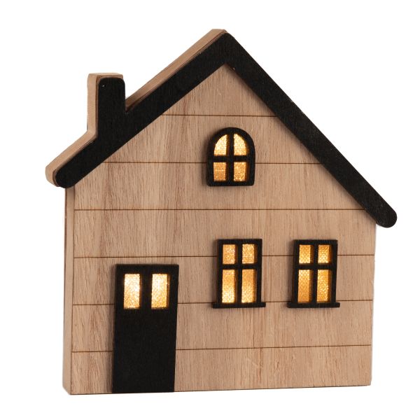 Dřevěný svítící domek k zavěšení/na postavení, 12/48