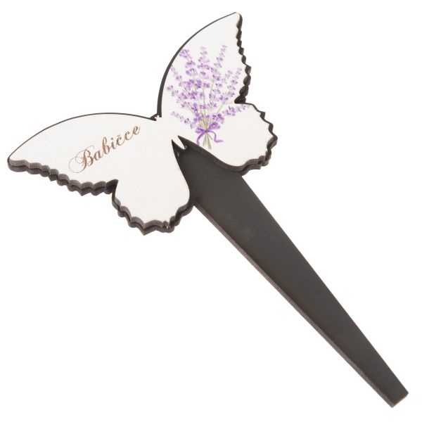 Dřevěný zápich motýl - levandule, "Babičce", 0/50