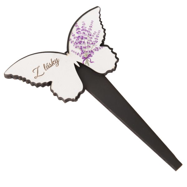 Dřevěný zápich motýl - levandule, "Z lásky", 0/50