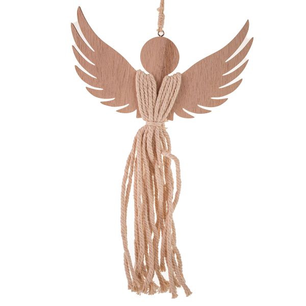 Dřevěný závěsný anděl s textilní sukní 25 cm, 12/144