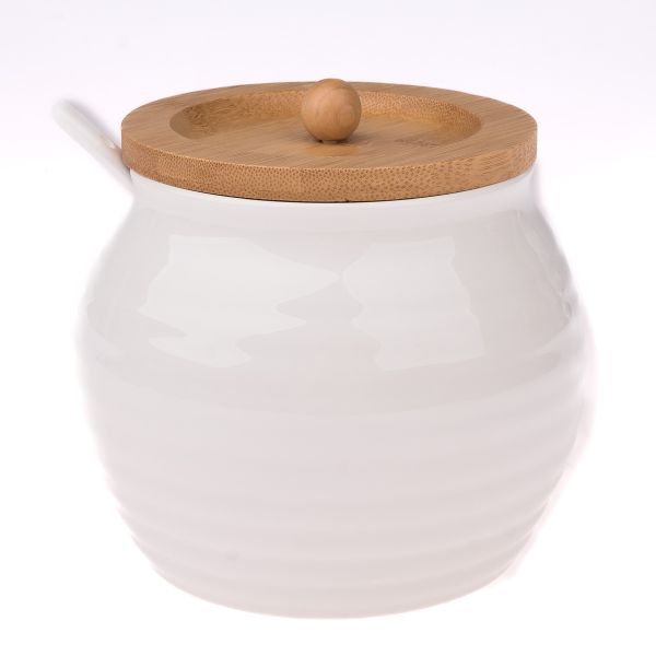 Keramická dóza s bambusovým víkem - 14 cm, 1/18