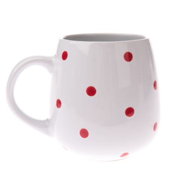 Keramický hrnek, bílý s červenými puntíky, 520ml, 12/36