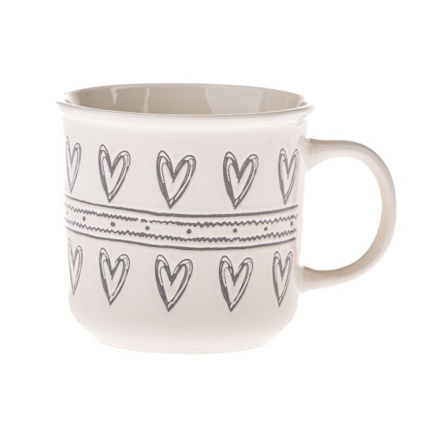 Keramický hrnek se srdci, bílý se šedou, 450ml, 6/36