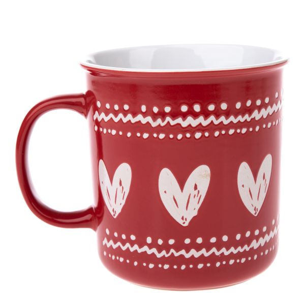 Keramický hrnek se srdci, červený, 710ml, 6/24