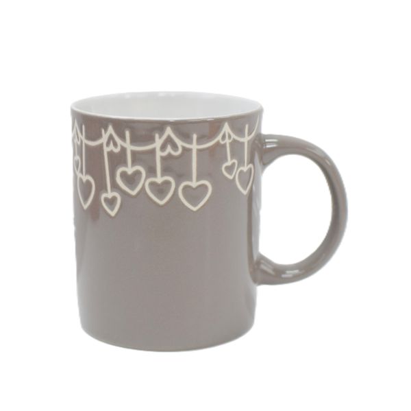 Keramický hrnek se srdíčky - šedý, 350ml, 350ml, 12/36