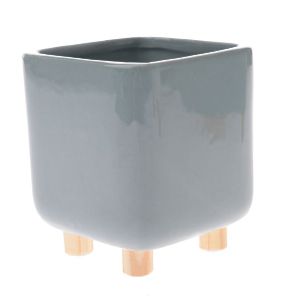 Keramický obal na květináč s dřevěnými nožkami, světle zelený, 0/24