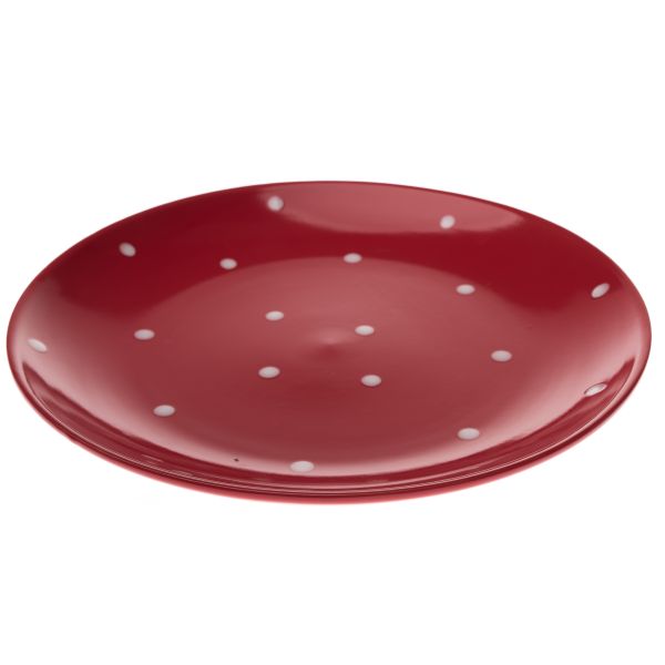 Keramický talíř - červený s puntíky, 12/24