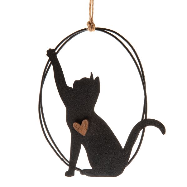 Kovová závěsná dekokarce - kočka, 0/144
