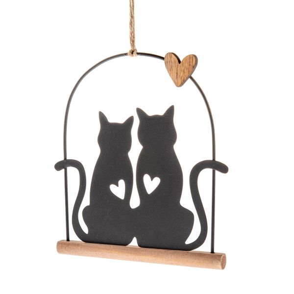 Kovová závěsná dekokarce na dřevěném základu - kočky, 0/96