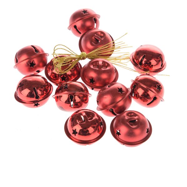 Kovové závěsné rolničky, červená - sada 12ks, 12/72