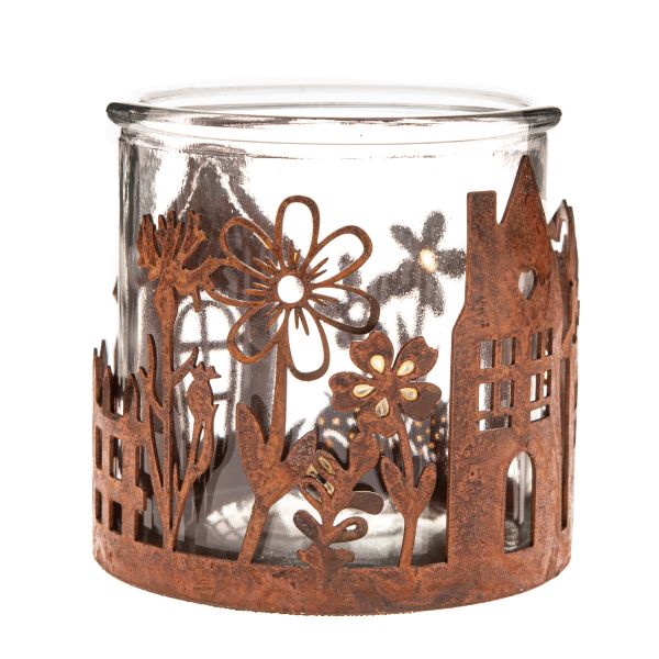 Kovový svícen se sklem - domky (8 cm), 0/20