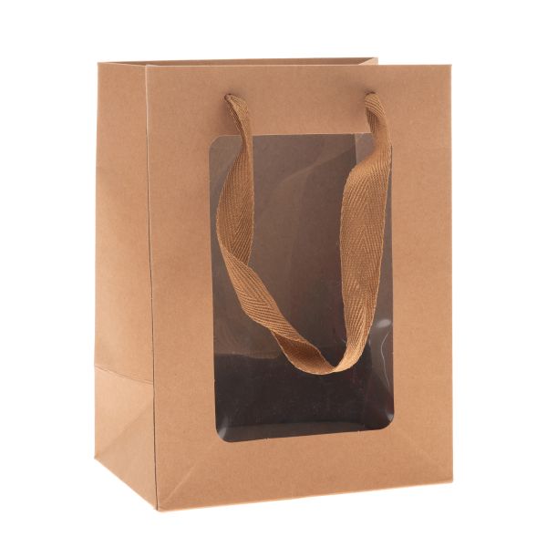 Papírová taška s PVC průhledem - hnědá - sada 12ks, 0/25