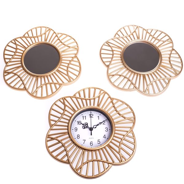 Plastový nástěnný set - hodiny a zrcadla Ø25cm- sada 3ks, 1/20