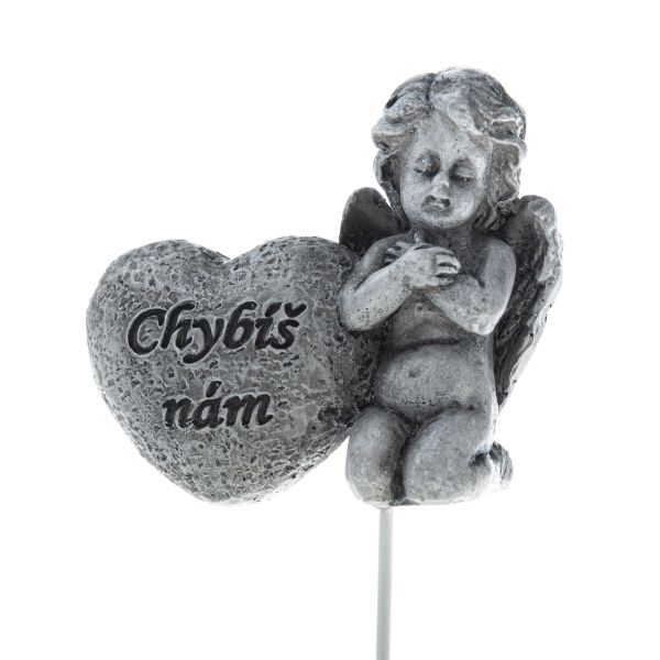 "Polyresinová zápich s andělem a srdcem "Chybíš nám", 12/192"