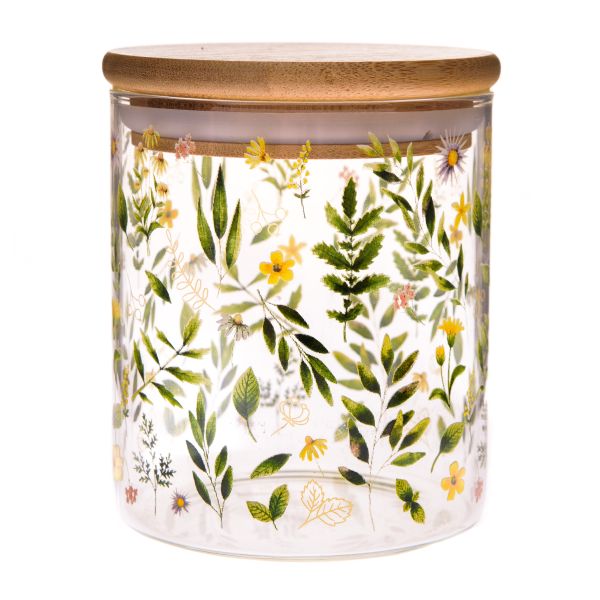 Skleněná doza s bambusovým víčkem - luční květy, 440ml, 4/48