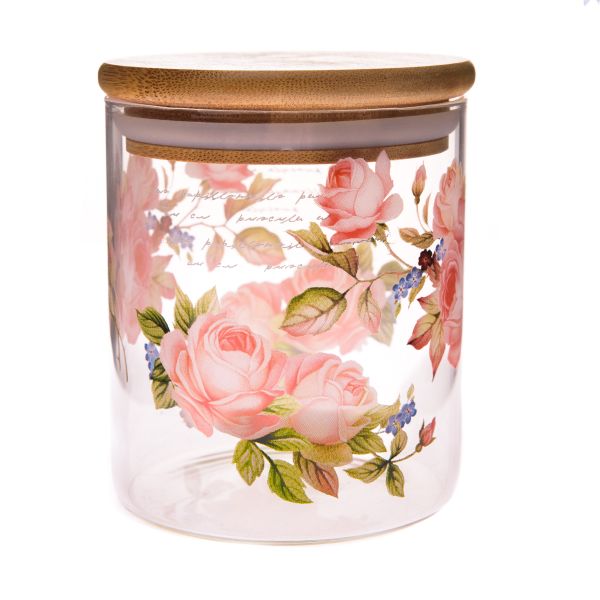 Skleněná doza s bambusovým víčkem - růže, 440ml, 4/48
