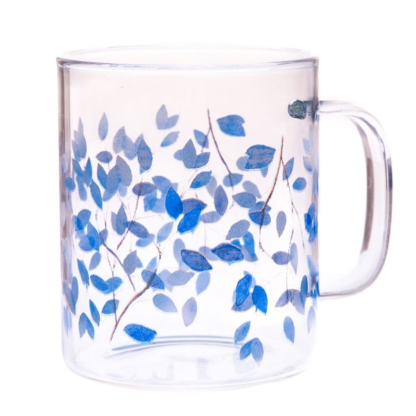 Skleněný hrnek - modré květy, 410ml, 6/48