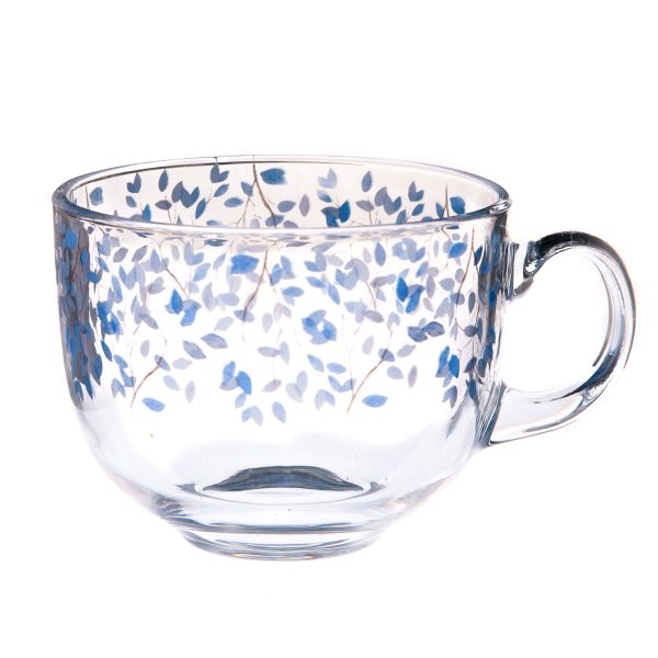 Skleněný hrnek - modré květy, 500ml, 6/36