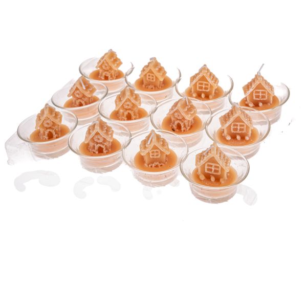 Svíčka ve skl.kalíšku (perníkový domek) - sada 12ks, 1/6