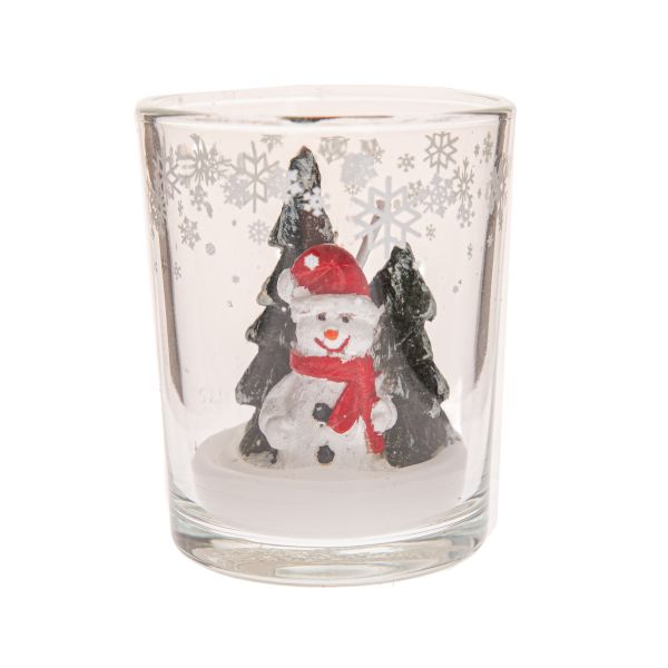 Svíčka ve skleněném kalíšku - sněhulák, 12/72