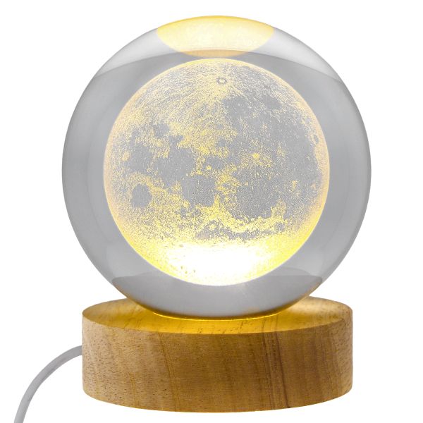 Svítící LED skl. koule na dřevěném podstavci s USB ø 8 cm, 1/36
