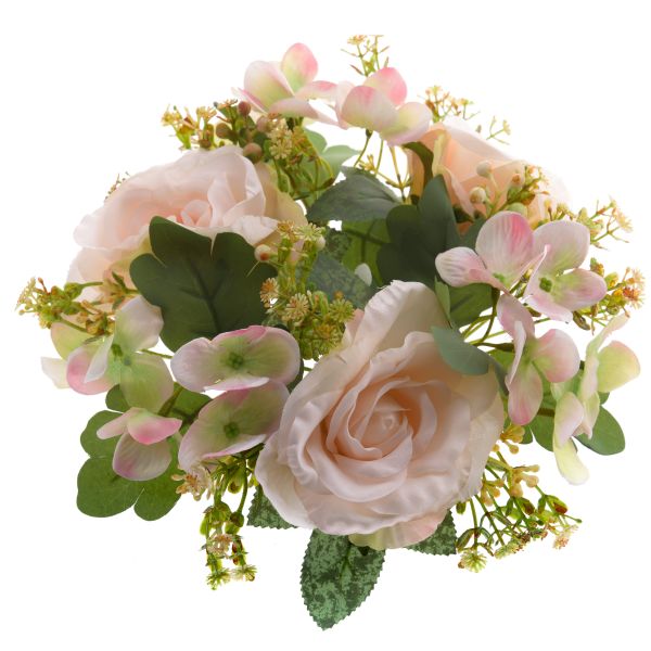 Umělý věnec - růže a hortenzie, krémová, 24/120