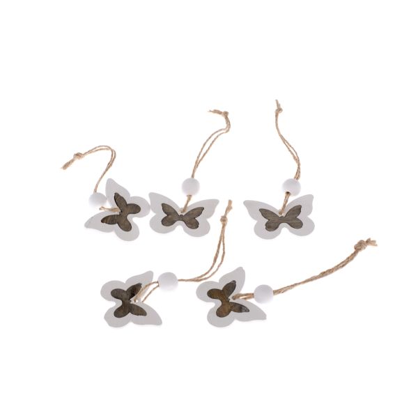 Závěsná dřevěná dekorace - motýlek - sada 5ks, 0/200