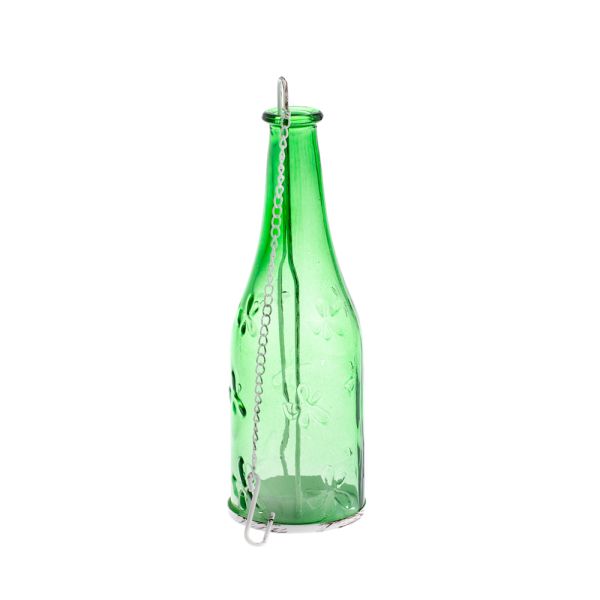 Závěsný skleněný svícen - zelené barvy - tvar láhve 0/24